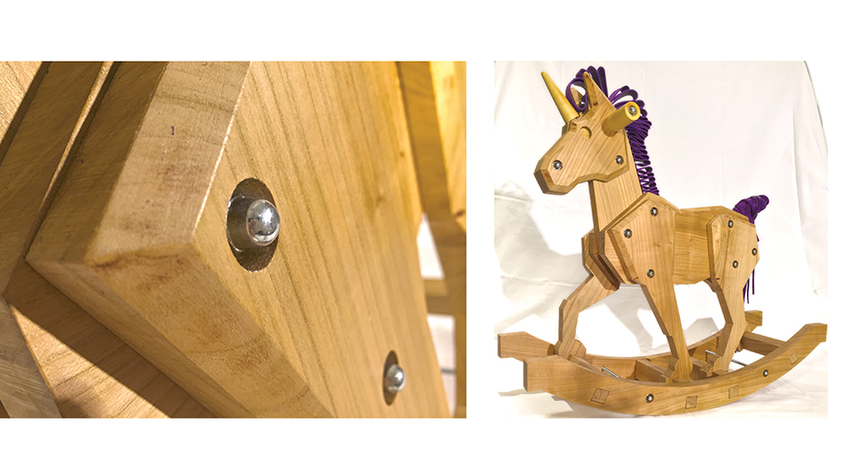 Unicorne is a magical transportation mean for kids. It is made of Ash wood, stainless bolts, purple leather and of course… a pinch of tenderness.