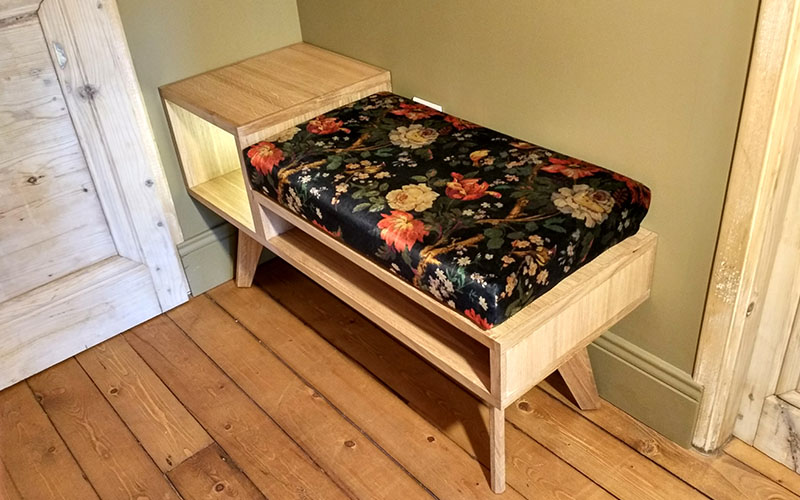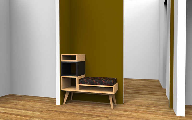 This is a custom piece of furniture making the everyday task of putting shoes on a very warm and easy experience.
